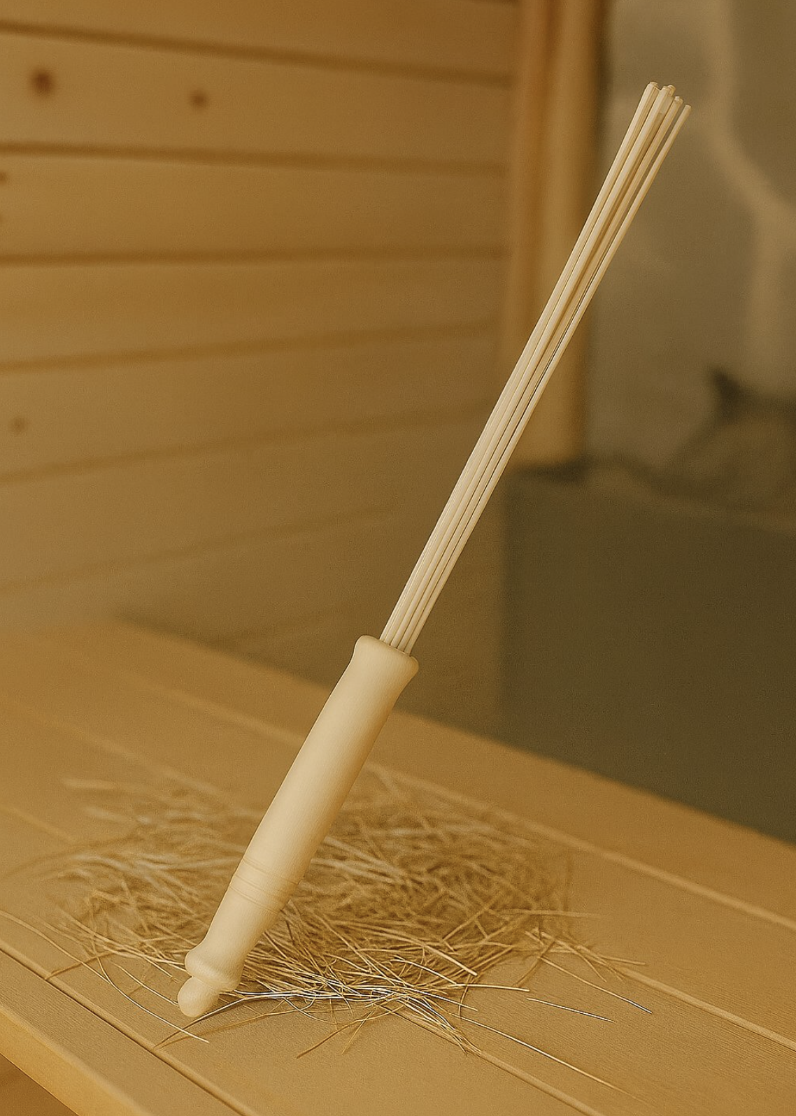 Iemērc slotu siltā ūdenī uz 2–3 minūtēm, lai zari kļūtu mīkstāki.