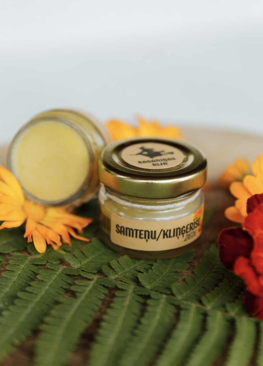 Sastāvs – Samteņu un kliņģerīšu Macerāts nerafinētā saulespuķu eļļā, bišu vasks ,citronu ēteriskā eļļa