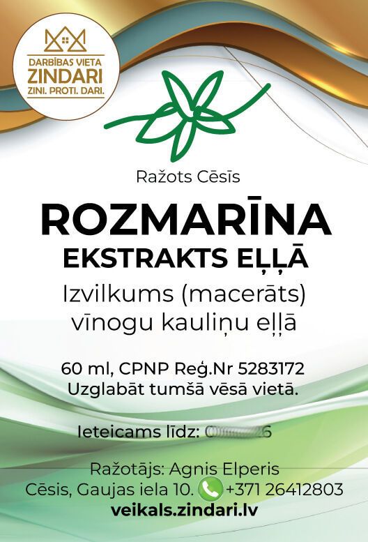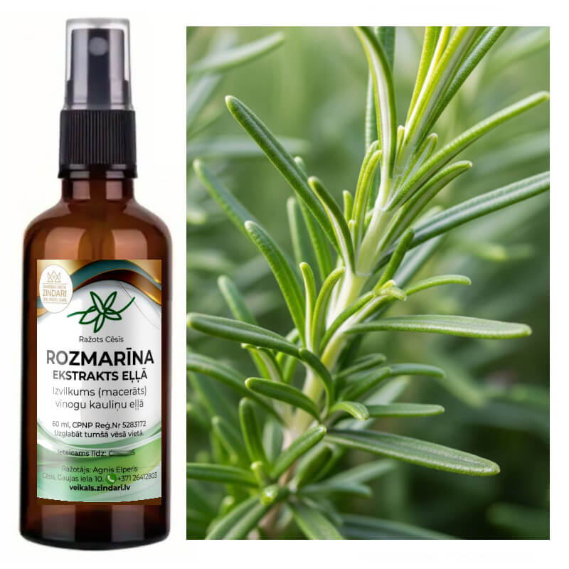 Rozmarīna ekstrakts vīnogu kauliņu eļļā (macerāts). Latīņu: Rosmarinus officinalis L., syn Salvia rosmarinus